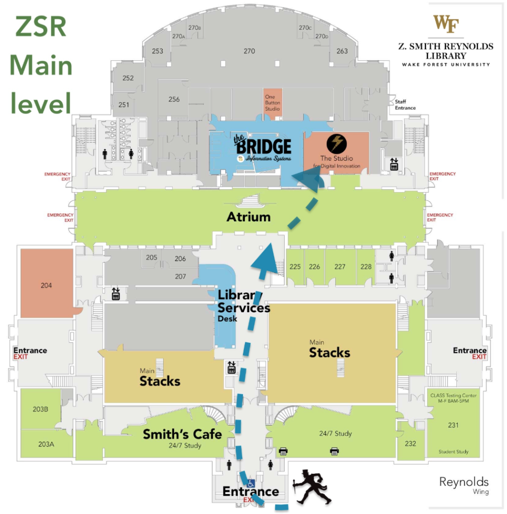 Visit us at Information Systems’ The Bridge in the ZSR Library for friendly IT support and WakeWare repairs. go.wfu.edu/TheBridge